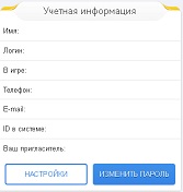 Username, login, number of days in the game, phone number, email, system ID, inviter.