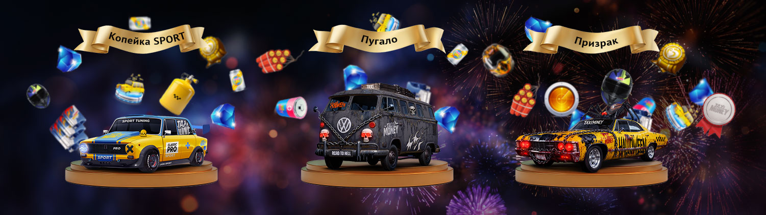 E você pode ganhar significativamente mais artefatos com os táxis bônus durante o evento. Esses veículos exclusivos também têm 2 novas e muito interessantes habilidades para a competição "Shustrik" individual e em equipe. E poderosos modificadores de bônus!