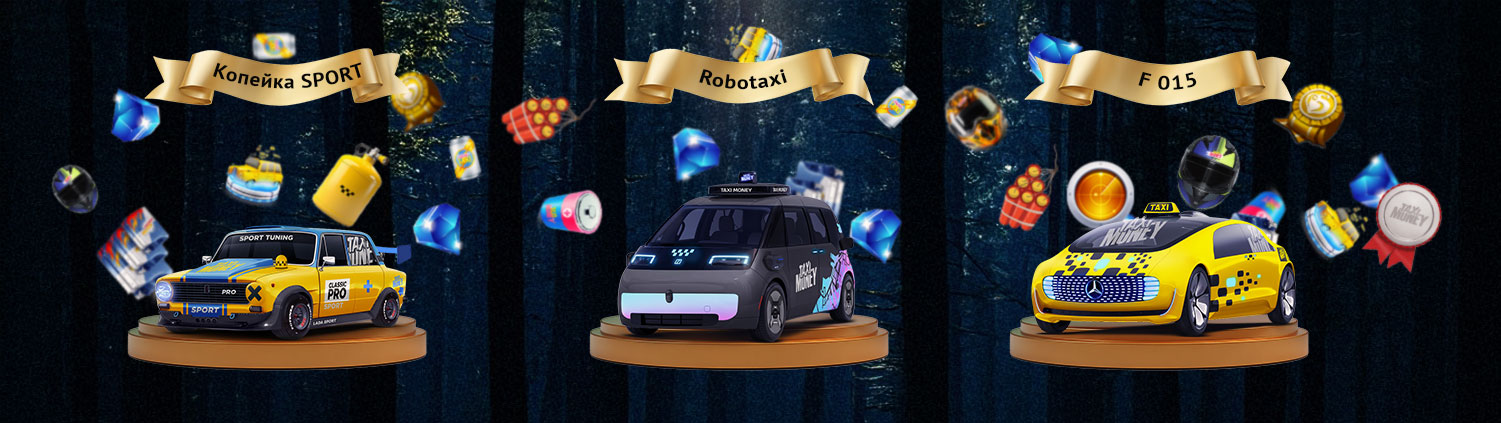 Ganhe um táxi com IA para ganhar dinheiro automaticamente – F 015 e Robotaxi – bem como um táxi Kopeyka SPORT com melhorias personalizáveis – a partir de apenas 49 ! Para isso, participe das loterias sem perdas de outubro com moedas!